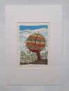 Hand embroidered autumn tree, with recycled fabric applique and sashiko style stitching on a cotton base.