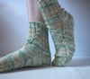 Inspired by an ivy branch (called lierre in French) climbing around a tree, these socks feature a deeply textured cable pattern over ribbing on one side and purl on the other, which makes them the perfect accessory to use your favorite variegated or self-stripping yarn. Both socks are different, forming an eye-catching symmetrical pattern.
