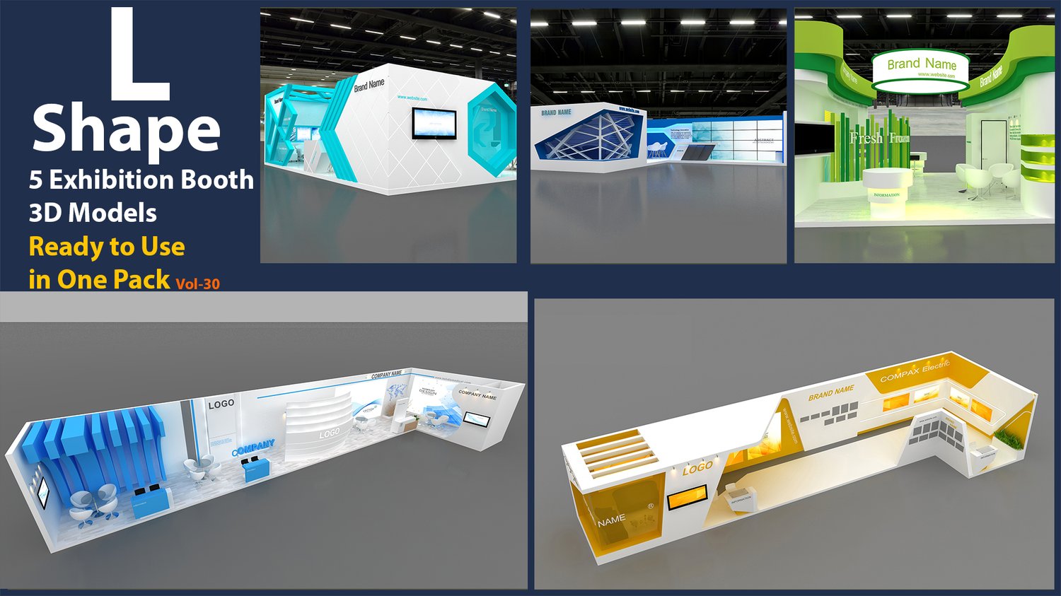 5 Exhibition 3D Model in One Pack ((L Shape Exhibitions))