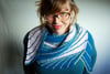 Work simple short rows with stripes in garter stitch, carrying both your yarns along as you go with some tricks which will prevent the need to weave in dozens of ends (you’ll only break your yarn a couple times).