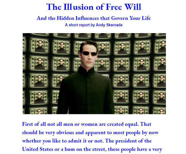 The Illusion of Free Will and the Hidden Influences that Govern Your Life. I'm guessing I've identified about 15 of them, there probably are many more I'm completely unaware of. Fate or Free will ? How does Destiny and God Sovereignty fit in ?