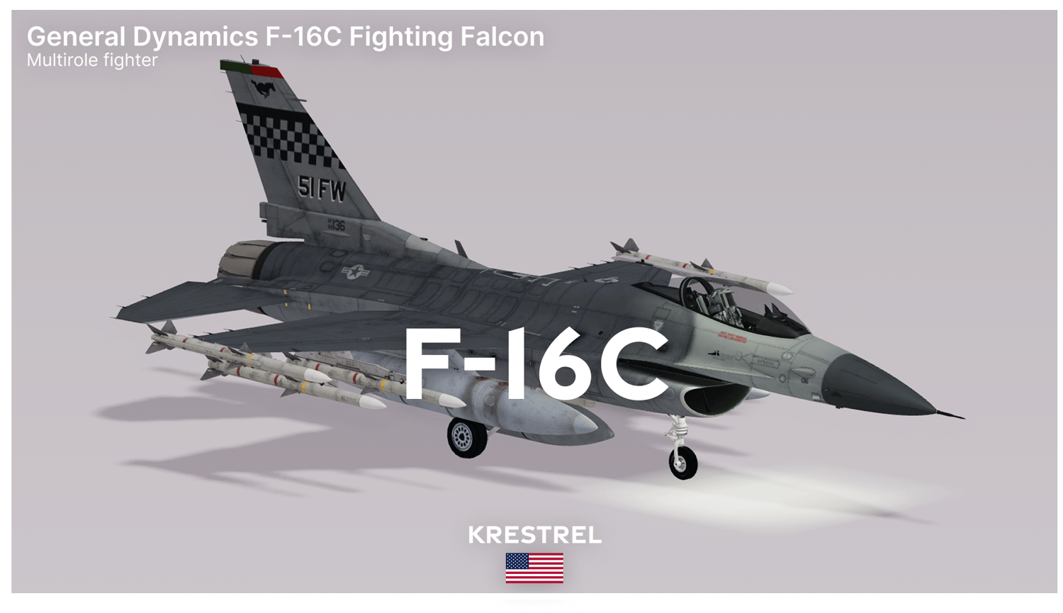 Get your players battle-ready with the F-16C. This agile, multirole fighter is designed for speed and precision, making it ideal for air-to-air combat and handling intense dogfighting scenarios in your game.