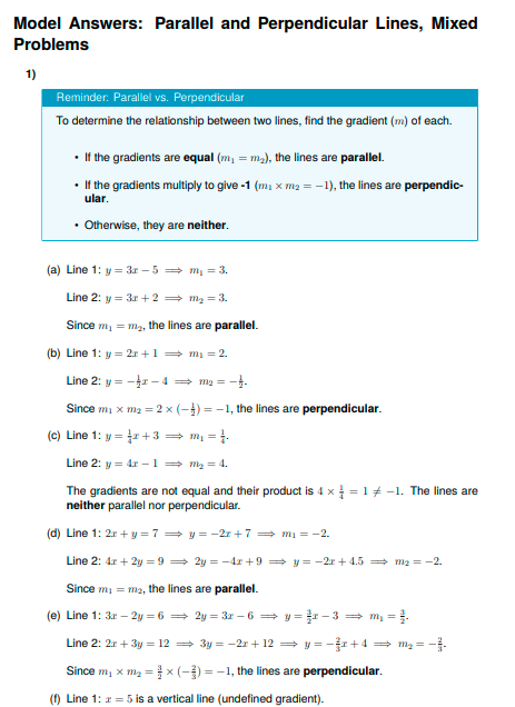 IGCSE Extended Level Maths: Parallel and Perpendicular Lines, Mixed Problems (Worksheet & Model Answers)