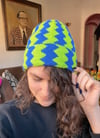 A shockingly vivid hat to get you through the dark days of winter! The folded over brim provides an extra layer of warmth and the colorwork makes this knit engaging the whole way through. Use up your leftovers from your last fingering weight project or head to the yarn shop to pick out an exciting color combo because you need this electric hat in your winter rotation!