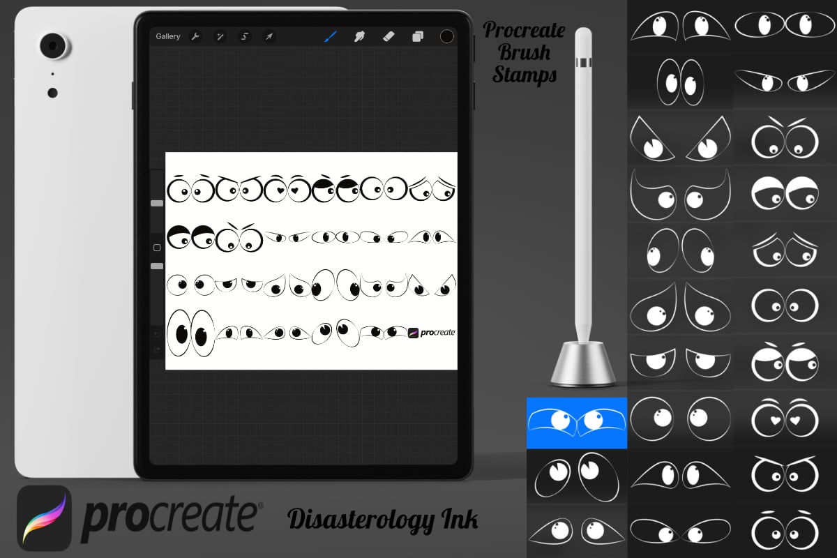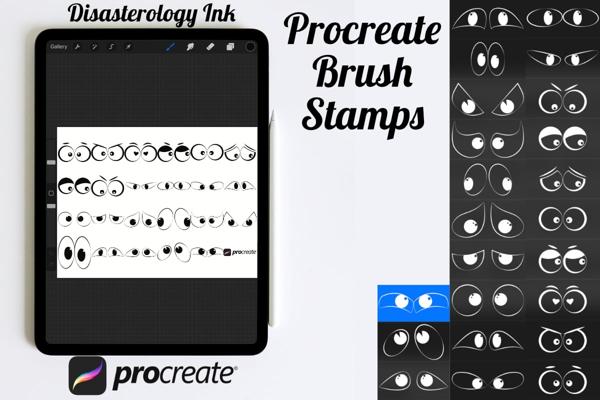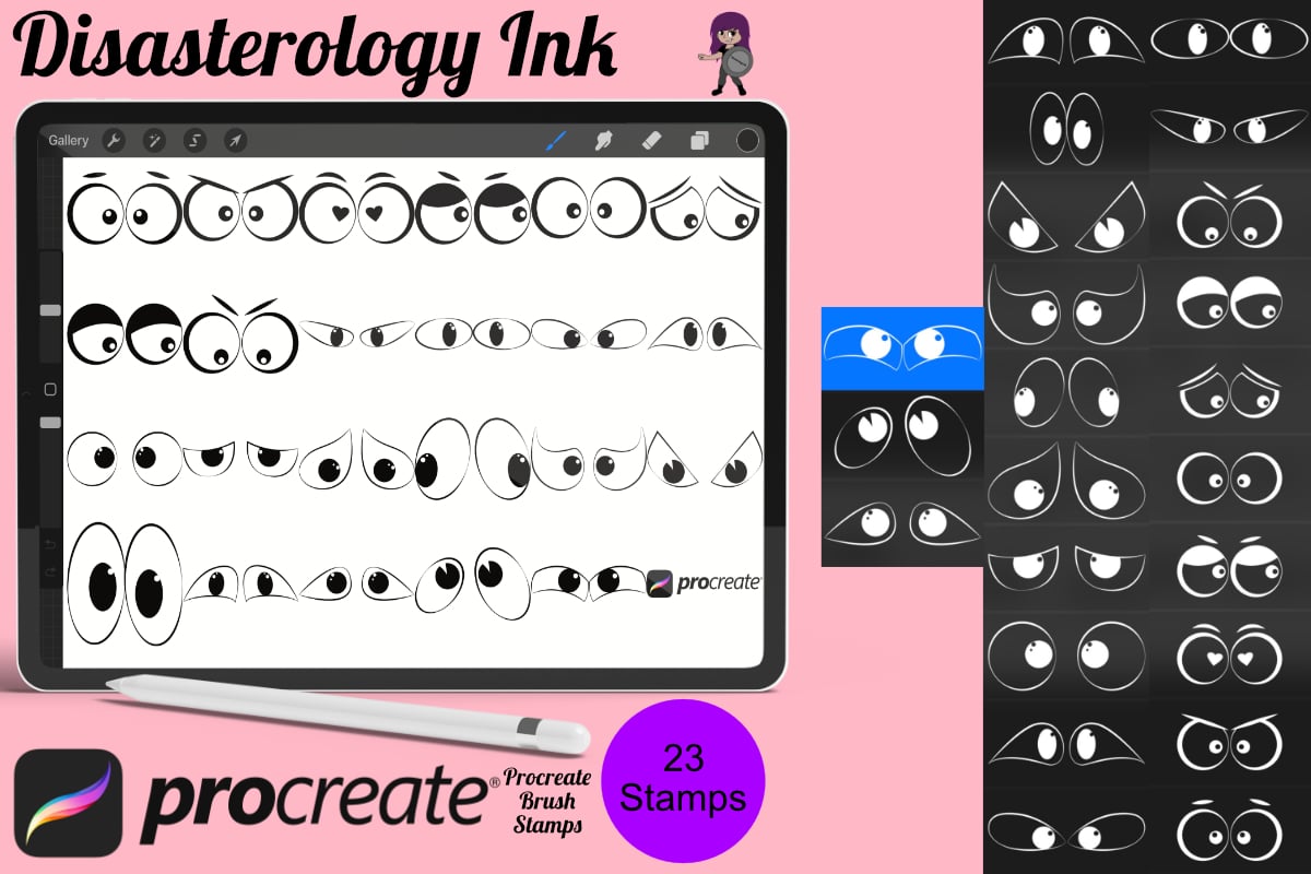Procreate stamps save time when drawing, saving the effort of having to recreate the same thing for multiple designs and projects, save time on your design by purchasing these cartoon eyes brush stamps so you can utilise that time on creating more beautiful art.