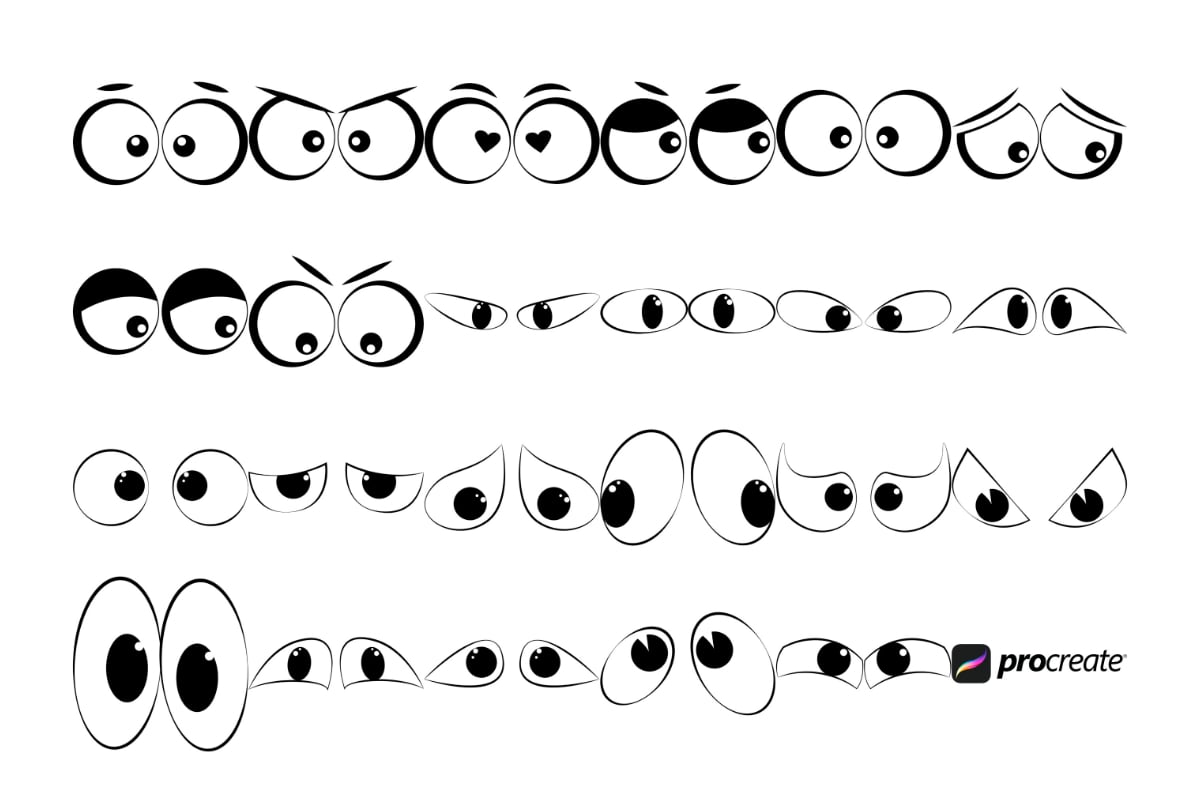 Cartoon Eyes Procreate Brush Stamps Set 3, 23 Cartoon Eyes