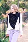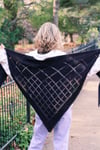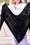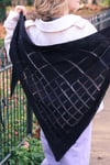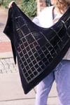 Construction: Allotrope Cubes begins at the bottom center point, and is worked to the long top edge, with geometrically expanding interlocking lace diamonds and a wide garter border.
