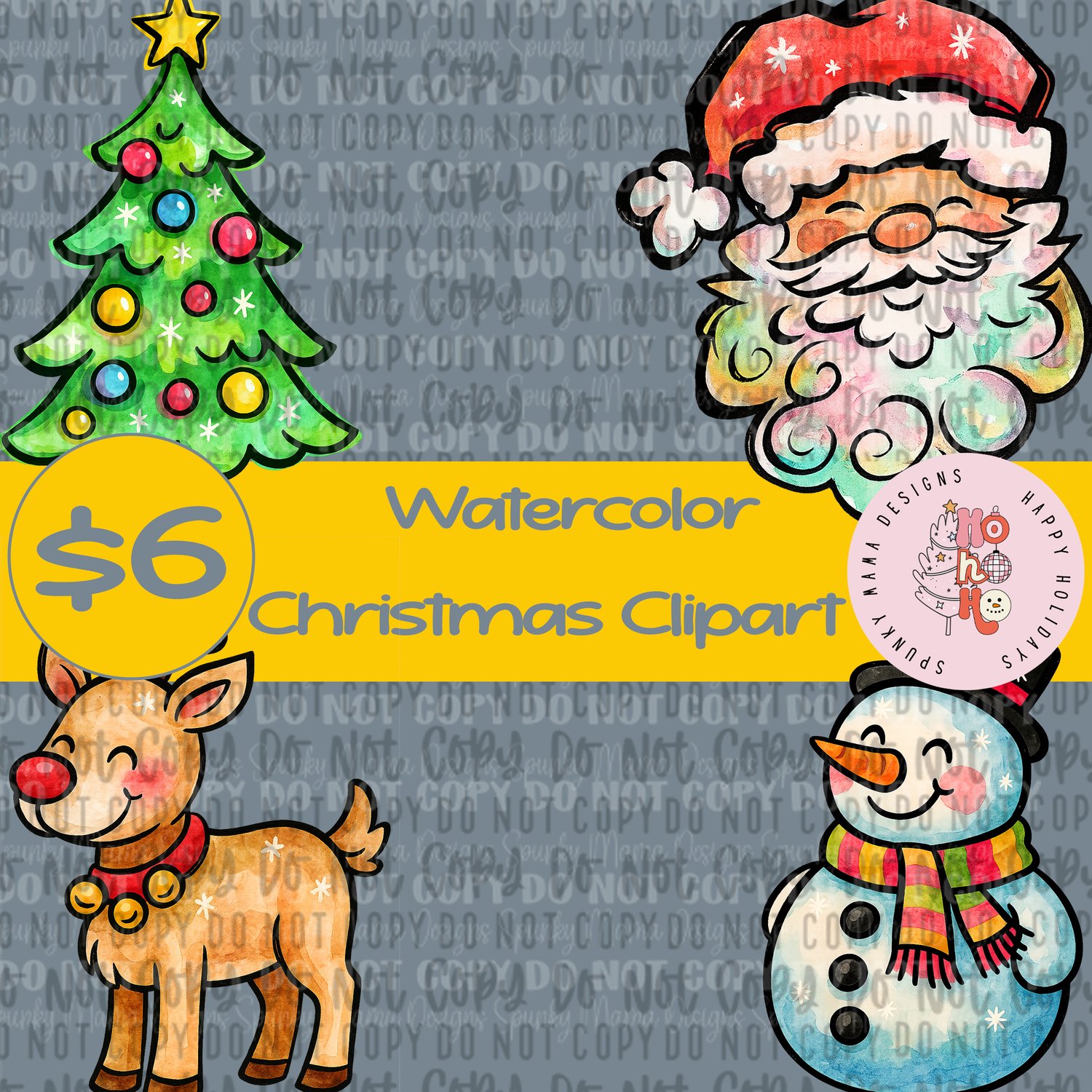 Watercolor Christmas Clipart Digital PNG Set