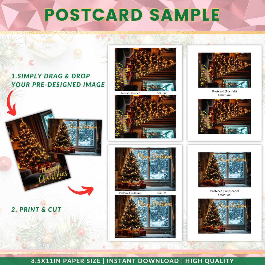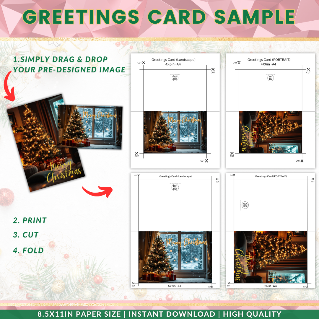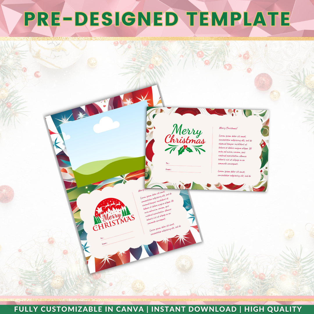 Simply DOWNLOAD, CUSTOMIZE, and SEND your greetings with ease! Perfect for personal use or business promotions, these Christmas Printable Greetings Card Templates will help you share the joy of the season quickly and beautifully.