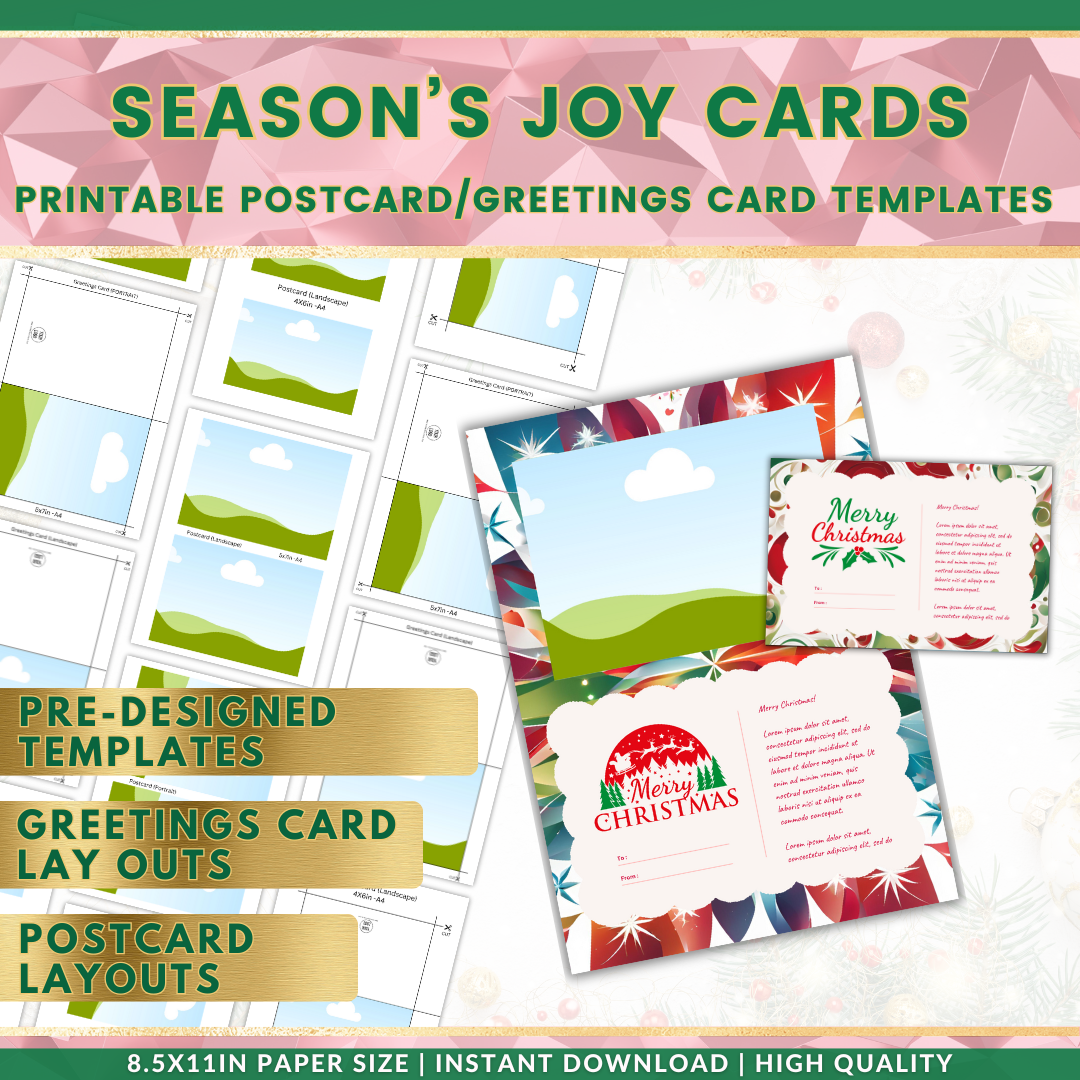 Season's Joy Printable Greetings Card Templates