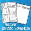 - 📝 Printable Listening Worksheets (multiple levels included)