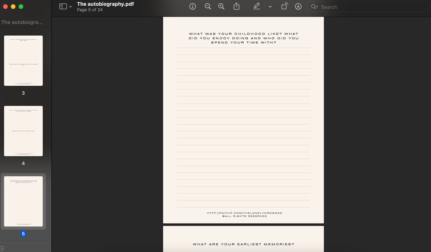 This autobiography is downloaded as a PDF but can be printed for those who prefer to hand write.