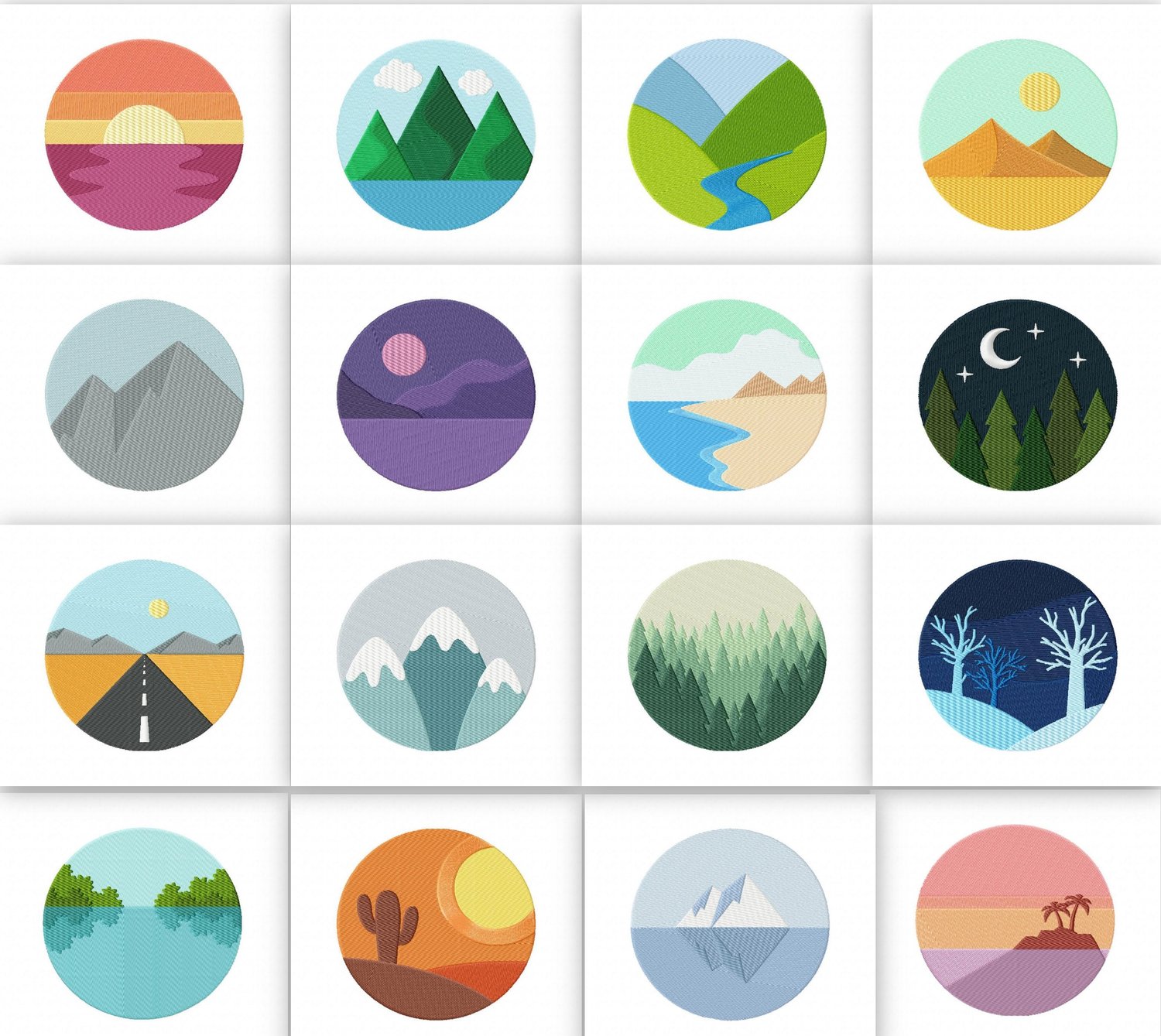 Machine embroidery design bundle, scenery badges, INSTANT DOWNLOAD