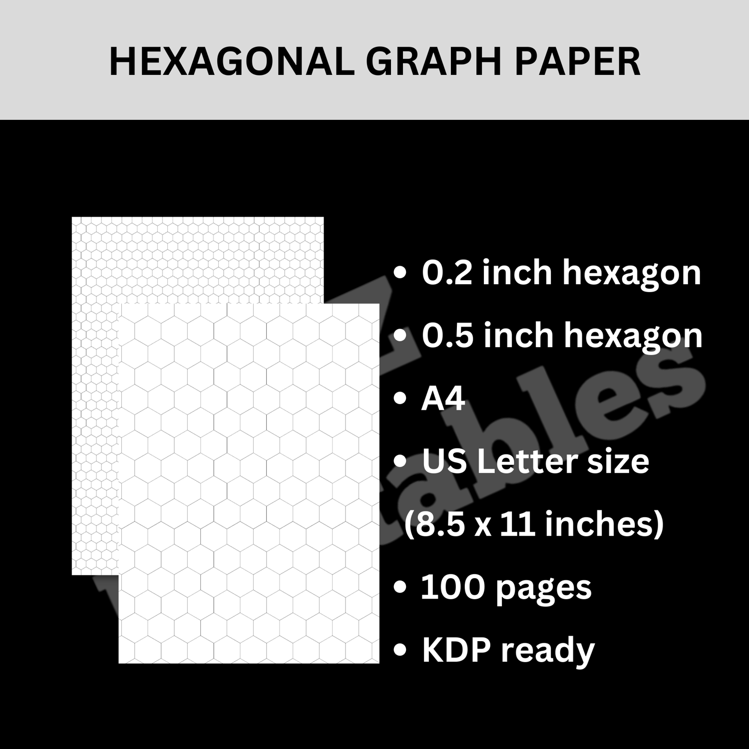 • 2 0.5 inch hexagon hexagonal graph paper - 8.5" x 11" and A4