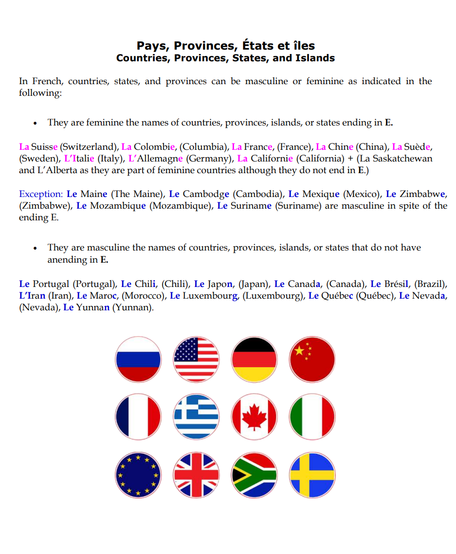 - The masculine and feminine for countries, provinces, states, and islands