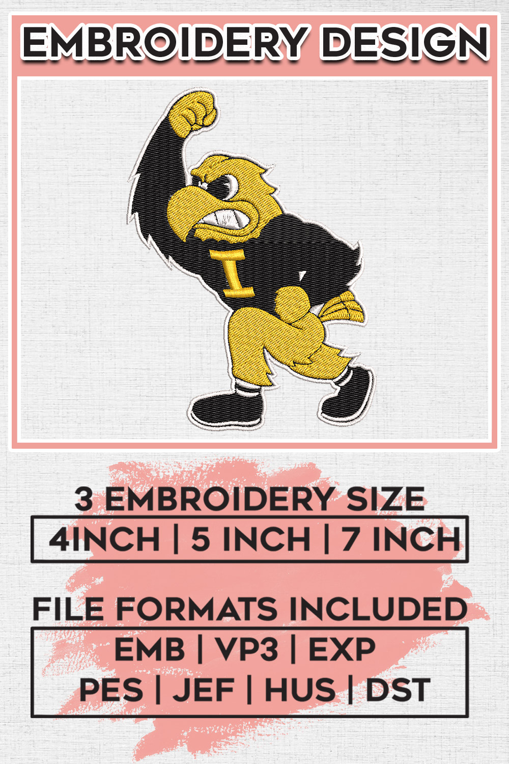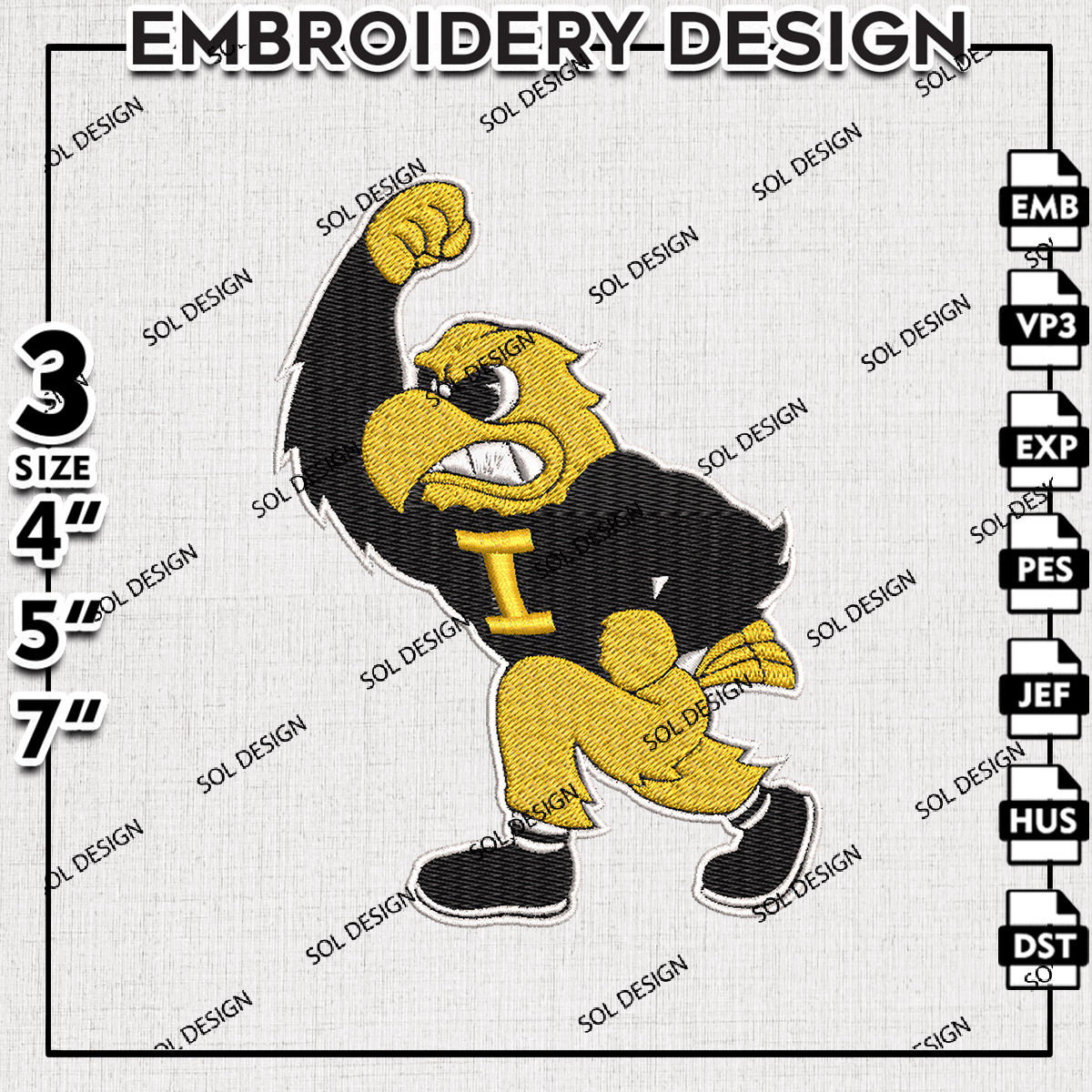 Iowa Hawkeyes NCAA College Football Team Mascot Logo Embroidery Files, NCAA Iowa Hawkeyes Team Embroidery, NCAA College Football Teams, Iowa Team Emroidery, 3 sizes, Machine embroidery designs, Digital Down