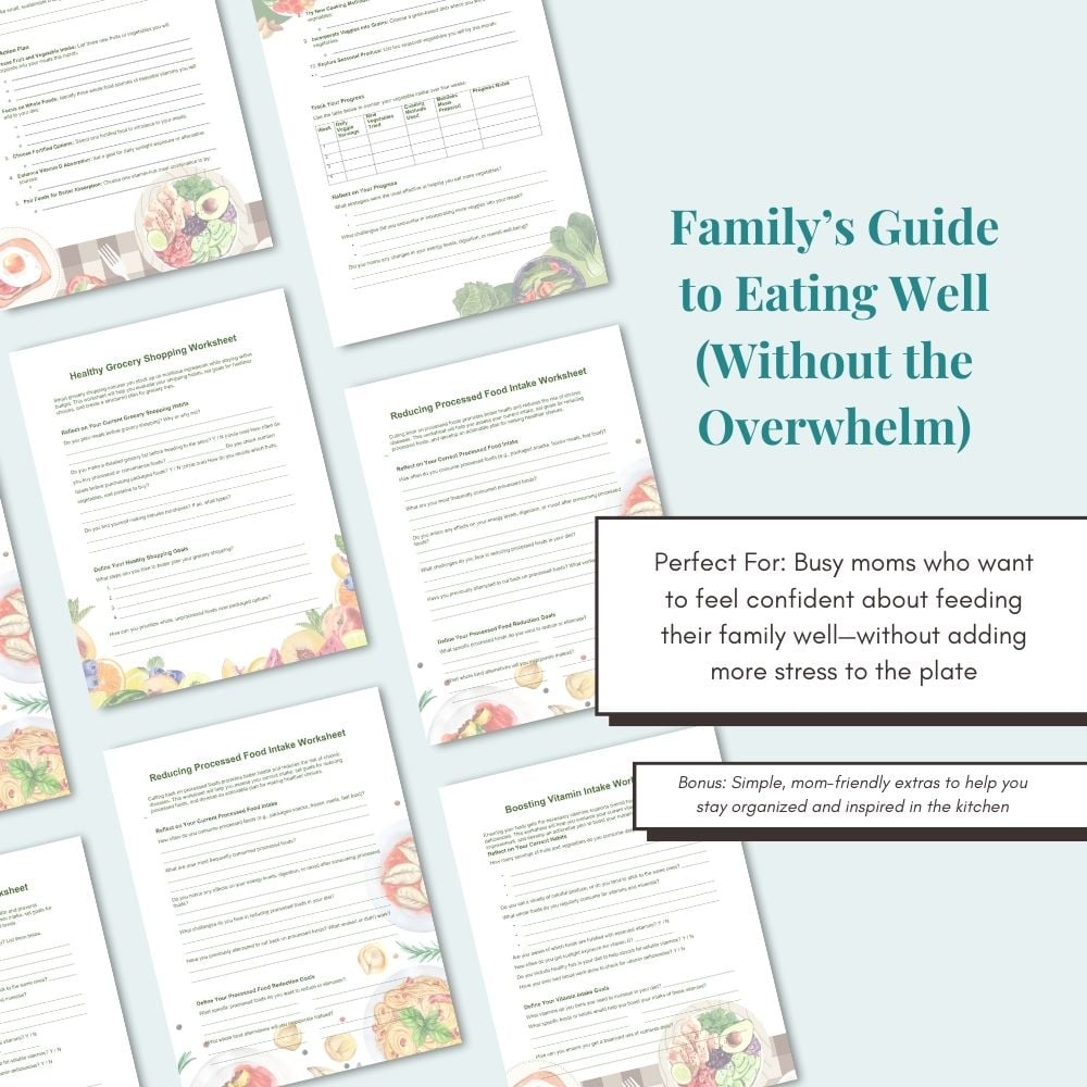This thoughtful, easy-to-use digital workbook was created for moms who are tired of asking “What should we eat?” and want a more peaceful, purposeful approach to food. Whether you’re dealing with picky eaters, overloaded grocery trips, or trying to cut down on processed food, this guide helps you simplify without sacrificing health.