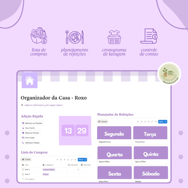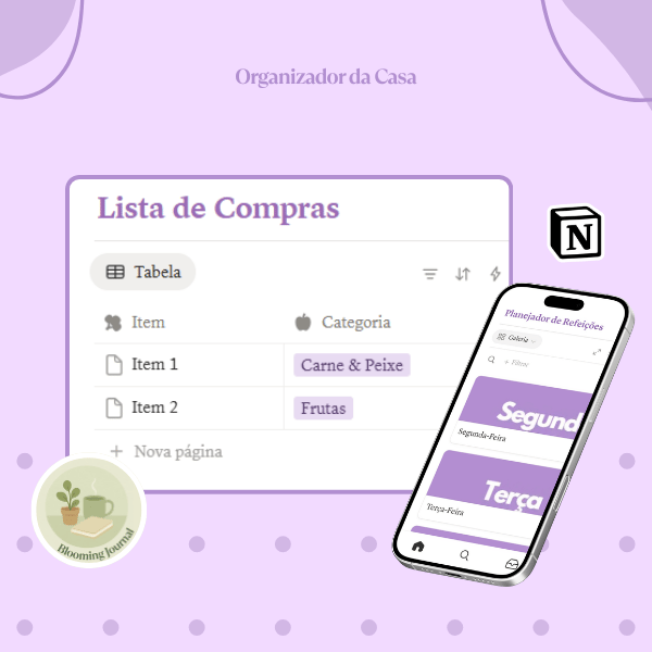 Este template ajuda a organizar diferentes partes da rotina da casa dentro do Notion, reunindo tarefas domésticas, planejamento de refeições e informações importantes em um único lugar!