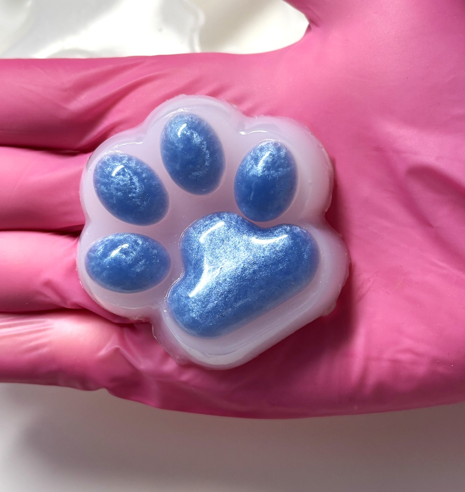 Contains 1 Paw Squishy, 4 blue mini paw squishies