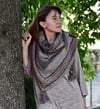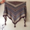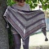 Kothbiro is a classical symmetrical triangle worked from the top down to the bottom edge. Textured stripes are alternated with Stockinette stitch fabric, to keep the project interesting, yet easy.