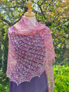 ***Hibiscus is a beautiful, light & airy crescent shawl scattered with trellis and flower lace patterns.***