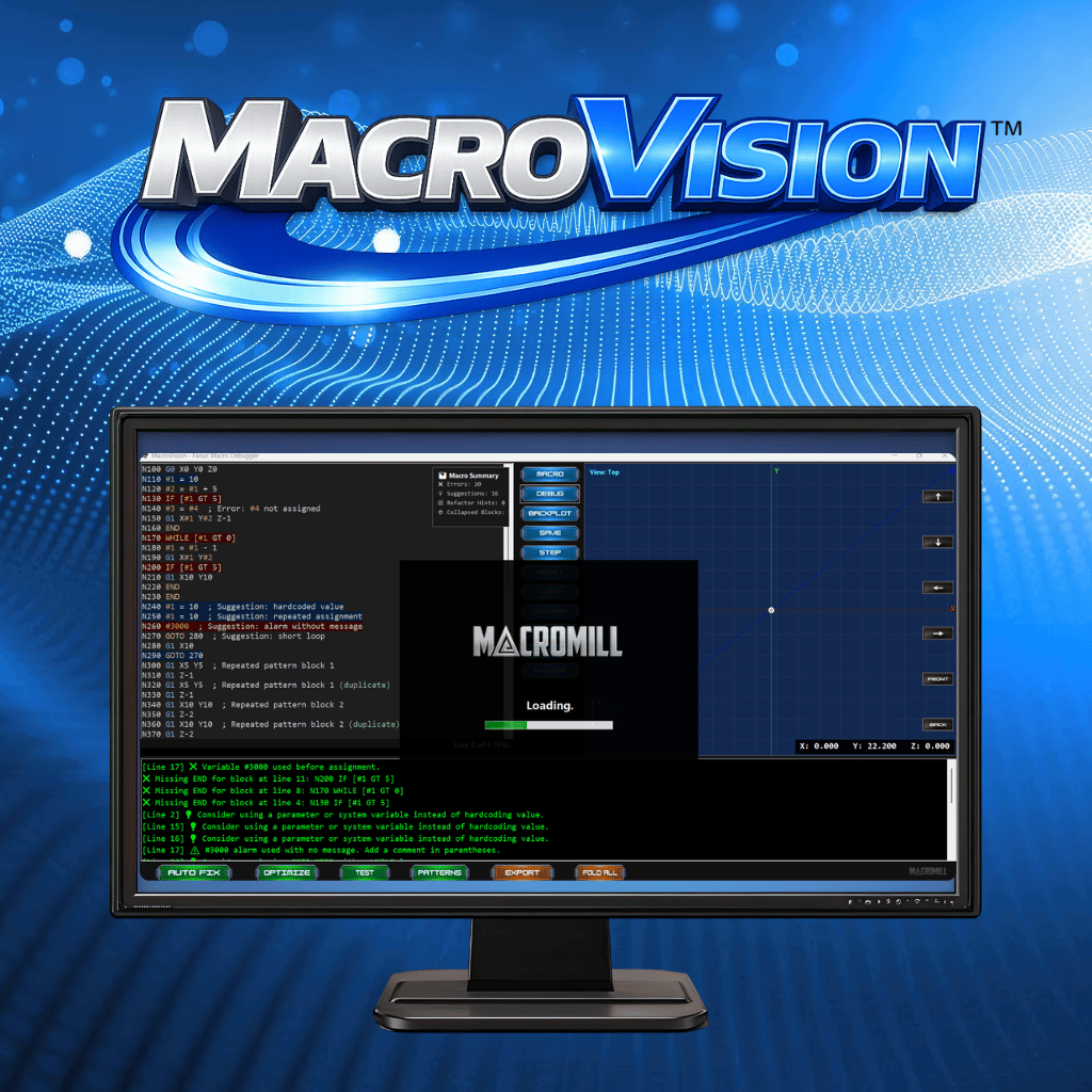 MacroVision™ is a powerful PC-based CNC software designed to give you complete visibility and control over macro programming. It goes beyond standard editing by analyzing macro logic, tracking variables, and breaking down complex programs into clear, structured insights—allowing you to understand, improve, and optimize your code with confidence.