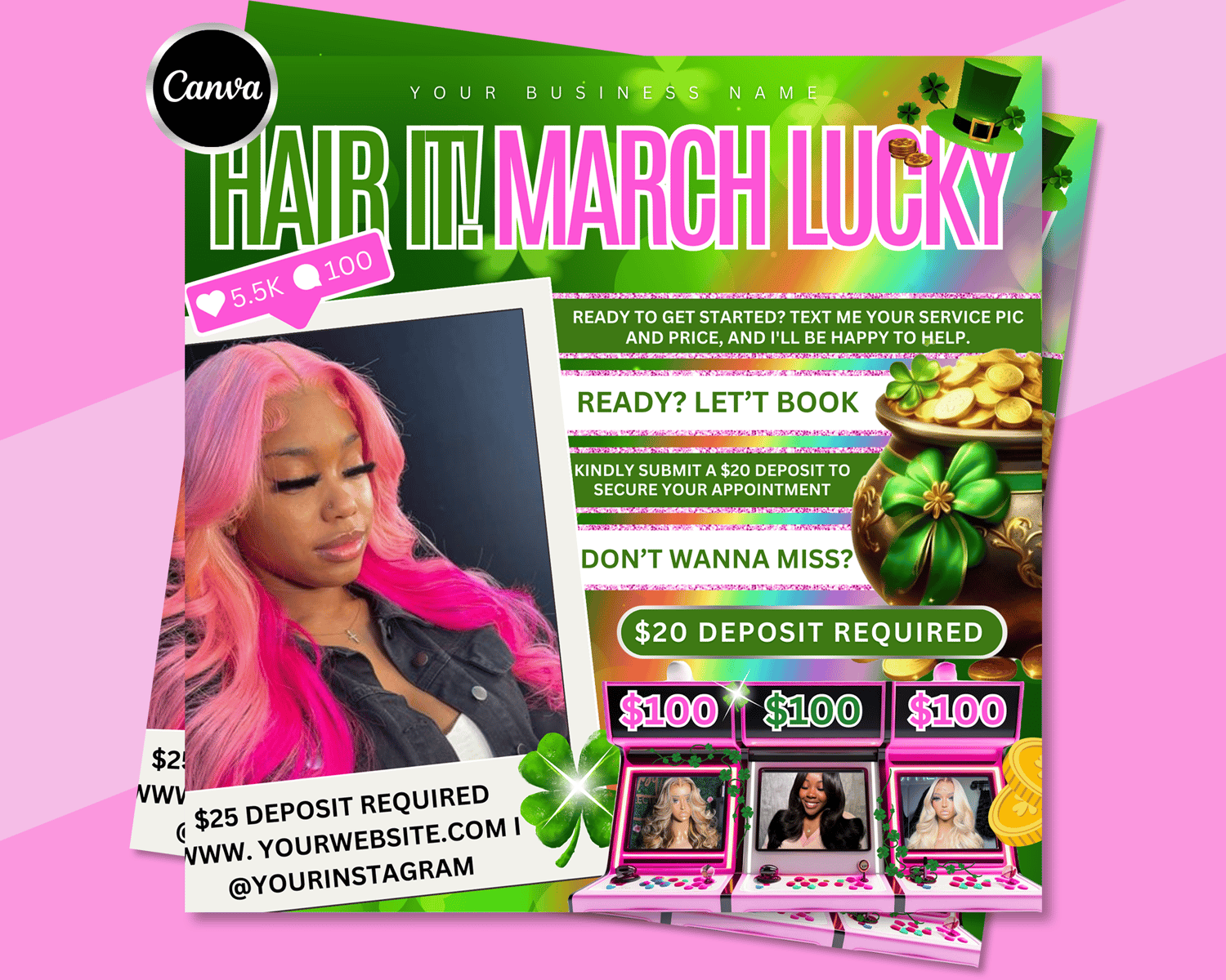 March Booking Flyer, St.Patricks Day Flyer, March Books, March Madness Flyer, March Book Now, March Hair, March Lashes Nails