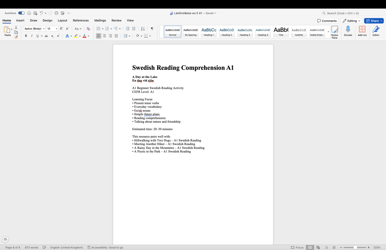 🇸🇪 Swedish Reading Comprehension A1