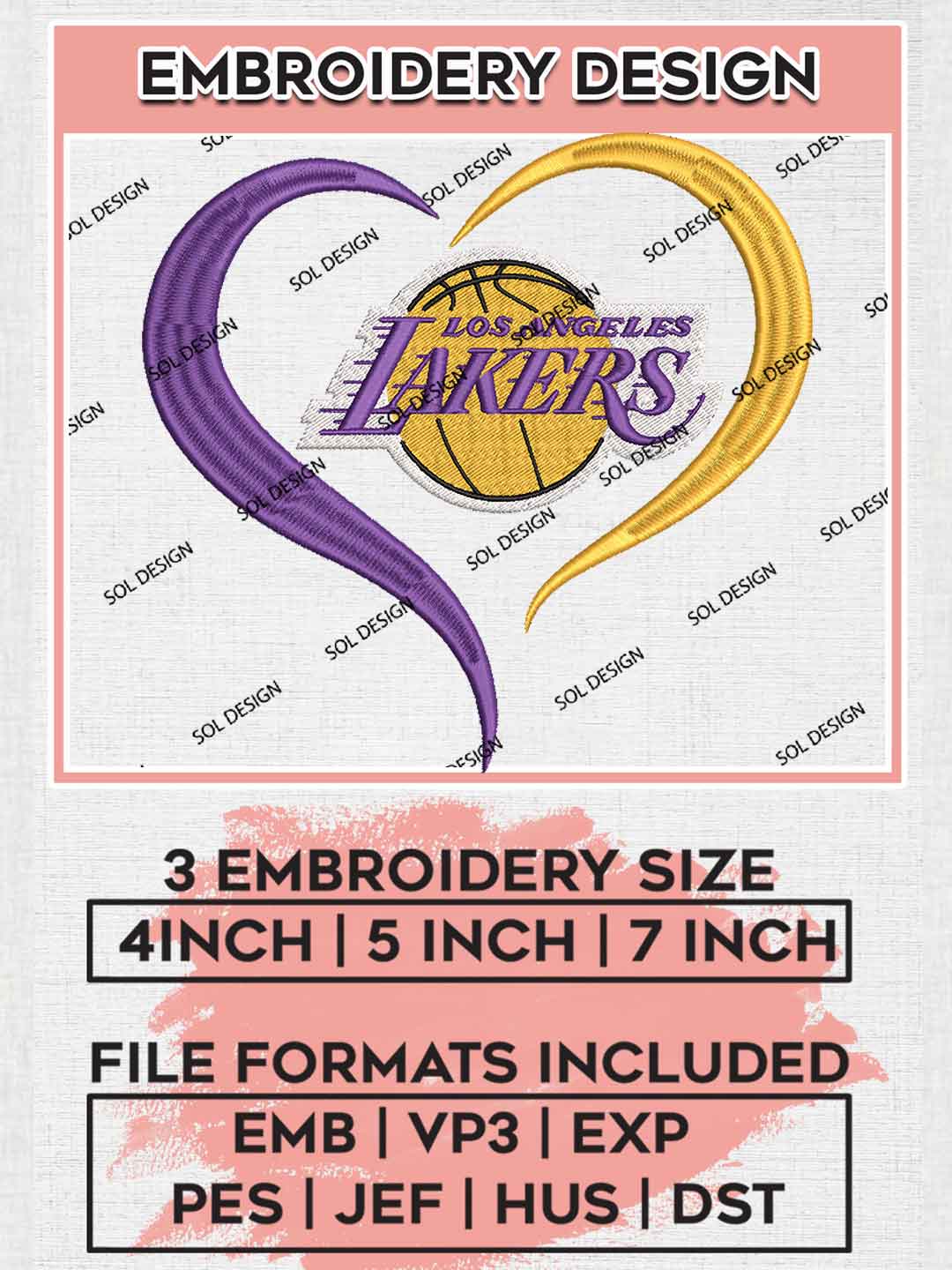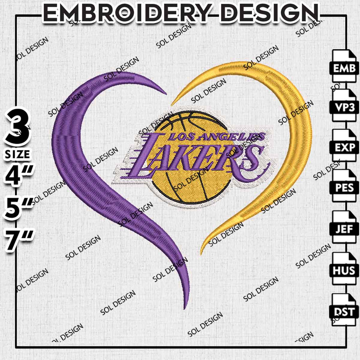 Los Angeles Lakers Team Heart Logo Embroidery Designs, Los Angeles Lakers Basketball Team Embroidery Files, NBA Lakers Team Logo Embroidery, NBA Basketball Team Machine Embroidery Design, 3 sizes, Digital Download