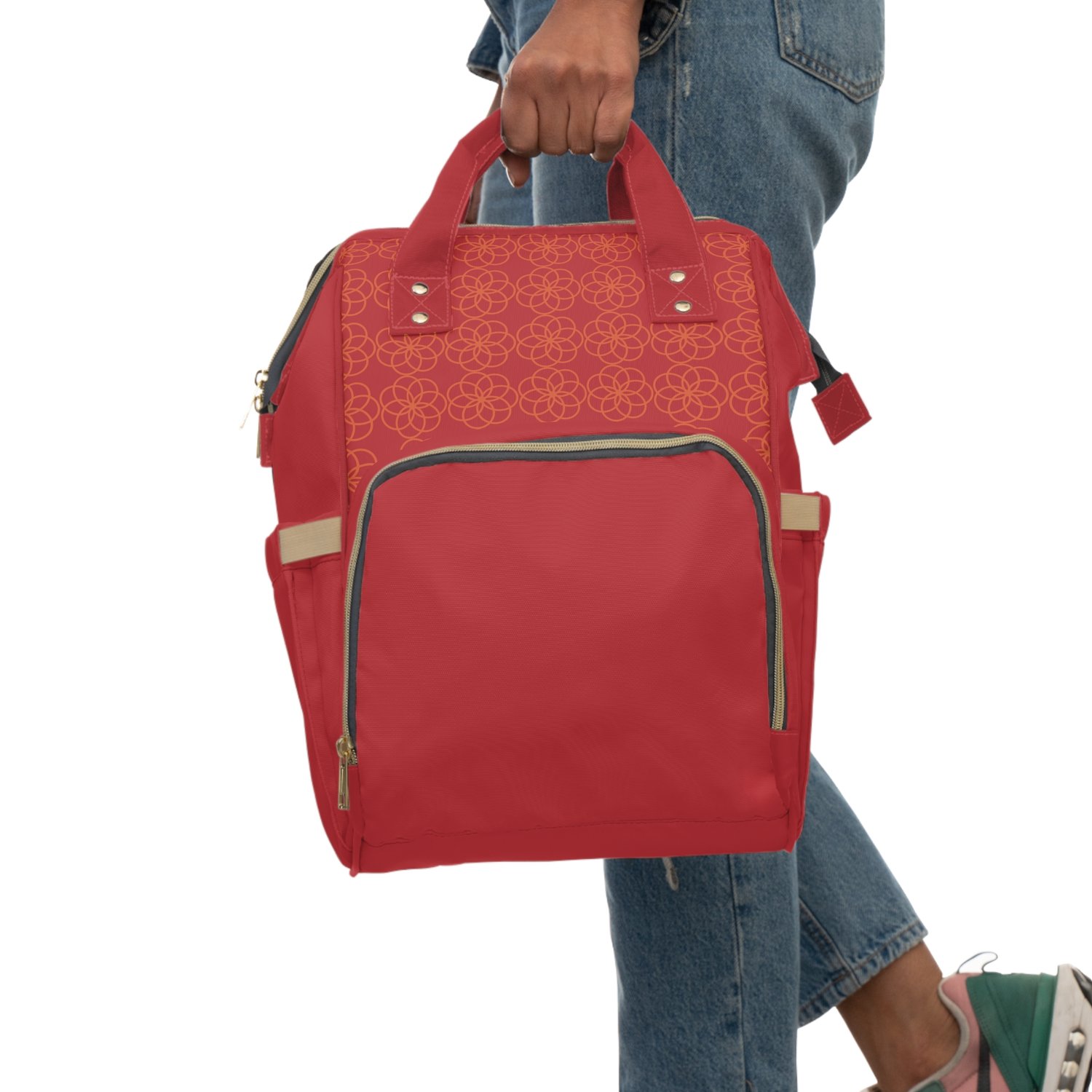 Stylish Red Multifunctional Diaper Backpack, Baby Bag, Mom Bag, Travel Backpack, Nursing Backpack, Gift for New Parents