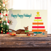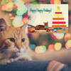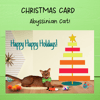 This is an adorable Christmas Holiday card that features a fancy Abyssinian cat enjoying his presents!