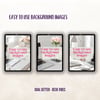 Featuring a clean white desk styled with blush pink accessories and soft pastel florals, these stylish backgrounds are perfect for giving your social media posts, planners, or digital products a fresh and modern feel.