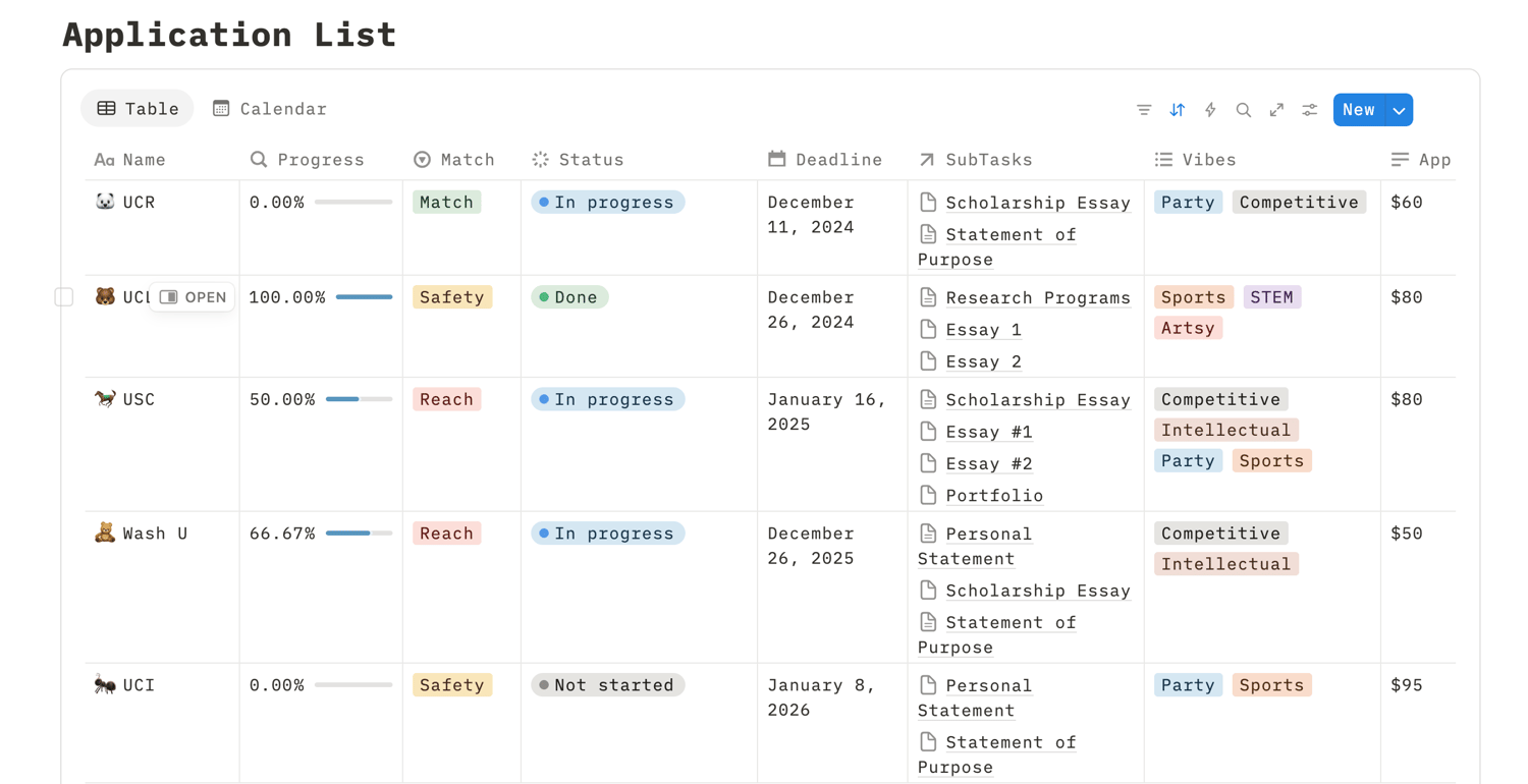 College Application Notion Template