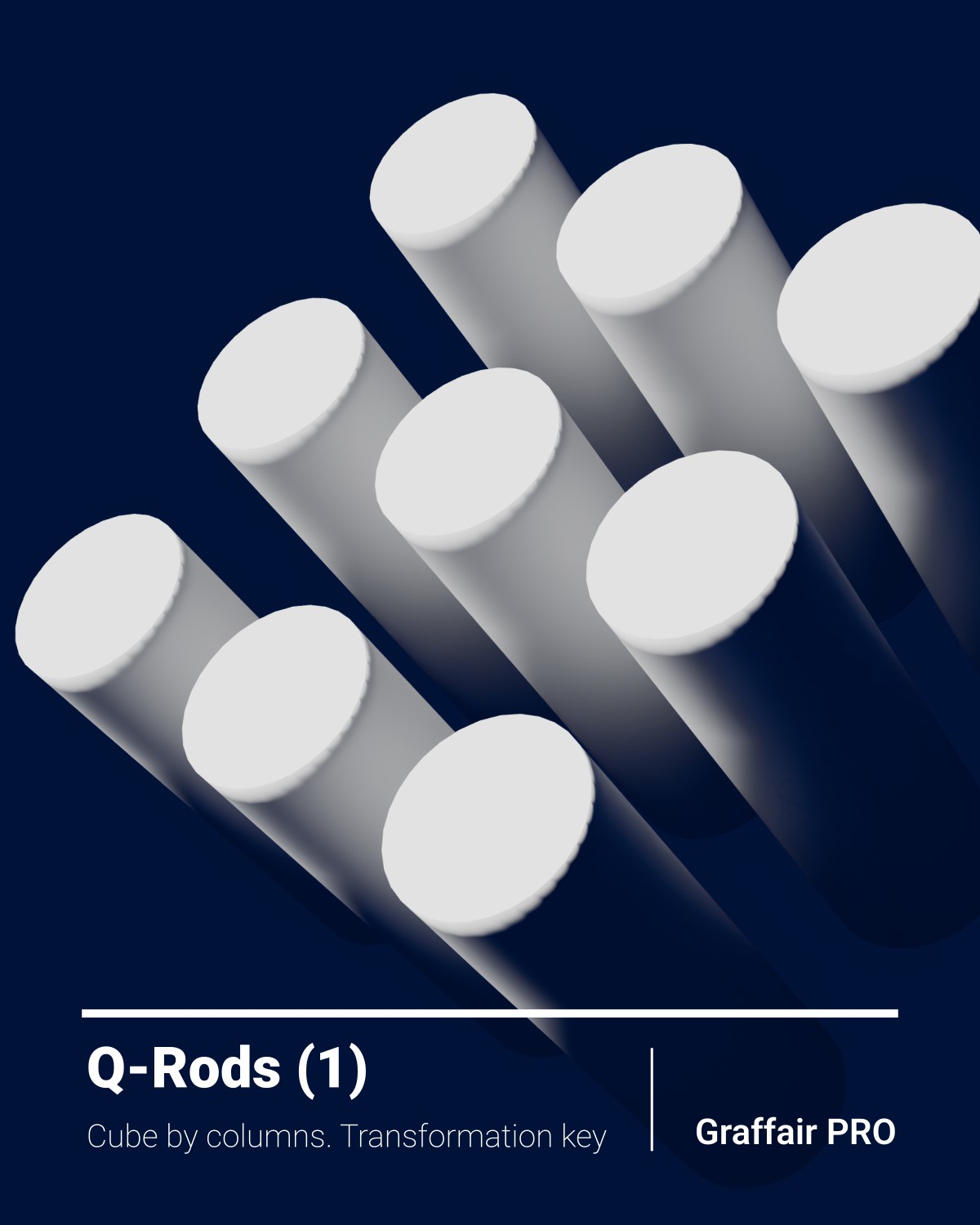 Q-Rods (1): The first version of a cube formed by columns visualizing the sense of a transformation, an eye in the future. Great for digital products, cover stories, publications, and events' creative key.