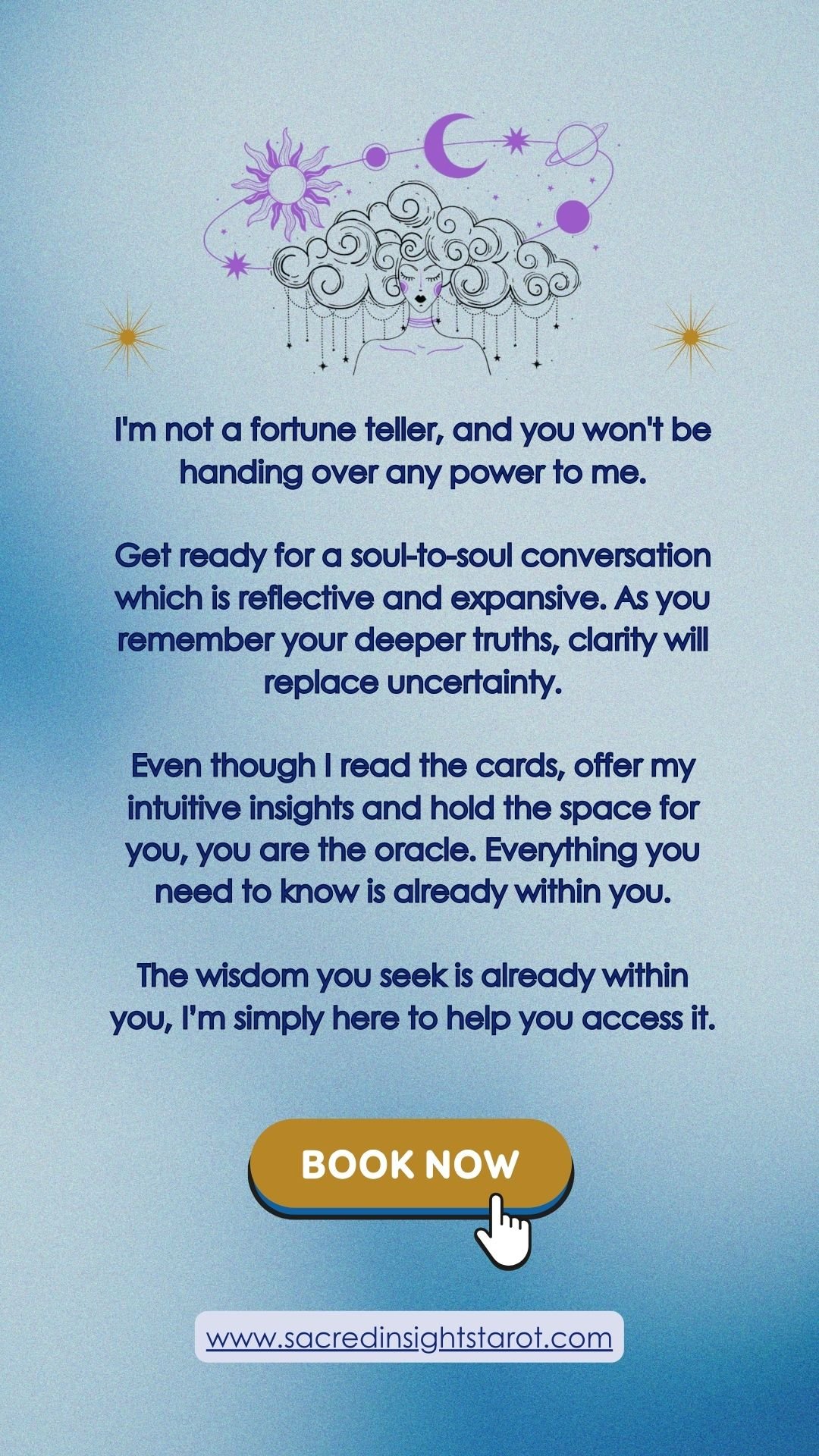 Sacred Insights guides you on a journey of self-discovery and personal empowerment. Whether you are seeking answers about relationships, life purpose, or your Soul's journey.