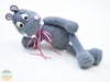 • Mary Maxim Starlette Yarn — 100% Acrylic 3.5 oz (100 g) and 180 yds (165 m) per ball: 2 balls of Light or Medium Grey, 10 yds of Pale Petal Pink, and a small amounts of Hot Pink, White, Black.