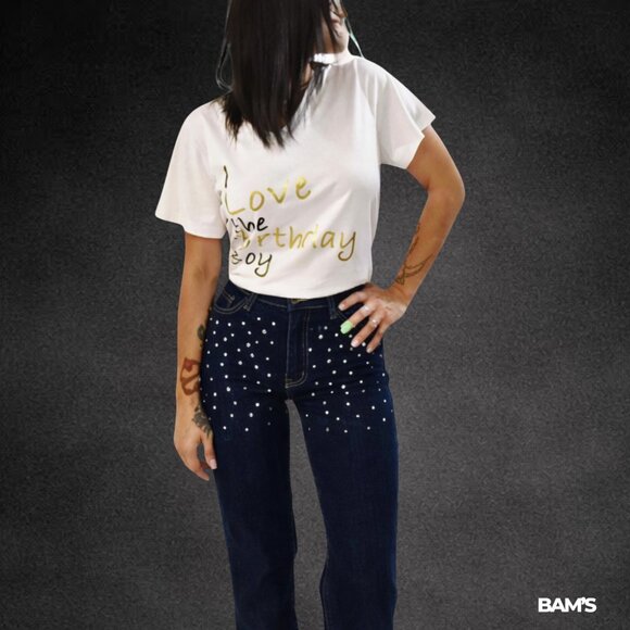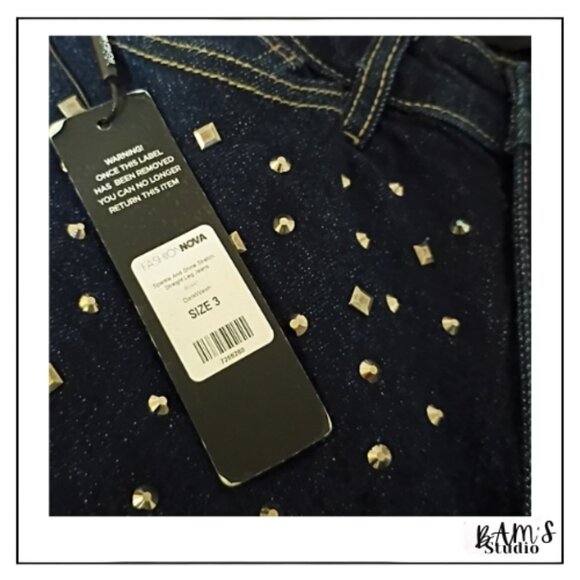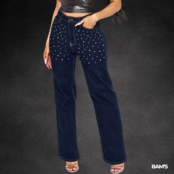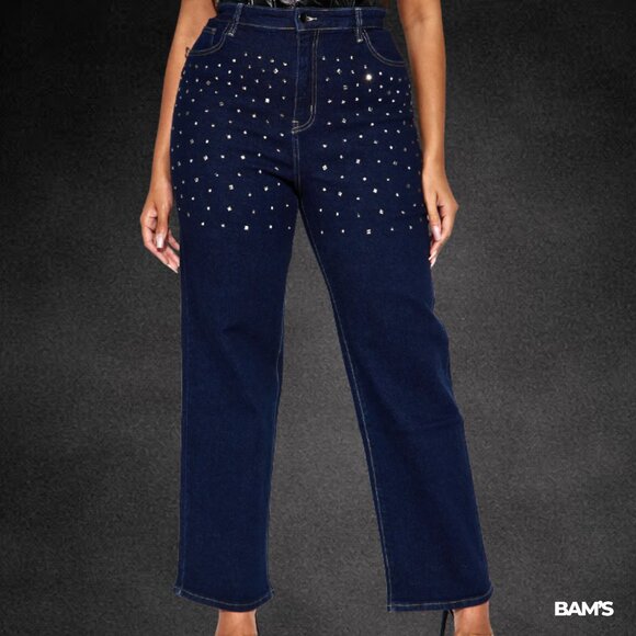 These Fashion Nova Sparkle & Shine Straight Leg Jeans are a total statement piece — covered in studded embellishments that catch the light beautifully. Perfect for nights out, concerts, or adding glam to any outfit.