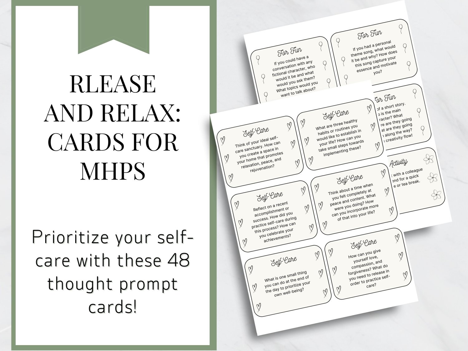 Are you looking for a simple way to release the stress of the day and focus on you? Make focusing on yourself easier with these simple though prompt cards!