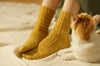 In my view, a wonderful morning is one when I can sleep late - but not too late either so that I can watch the sky change from dark to so many bright colours. It’s a morning when I can do nothing else but grab a book and dive into imaginary worlds while a cat is purring beside me. It’s a morning when I can take the time to enjoy a nice breakfast, something like tea and waffles with jam… With their simple yet interesting textured pattern, these socks were designed to reflect this feeling of a cosy morning, and should keep your feet warm and snug while you get on with your morning activities!