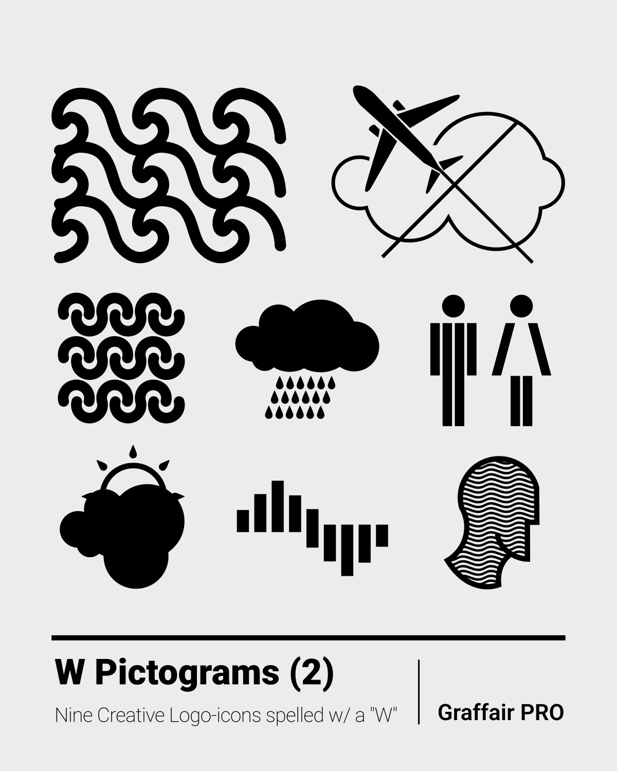 W Pictograms (2): The 2nd set of nine pictograms, each beginning with a "W".