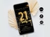 Black and Gold 21st Birthday Evite Editable Template Twenty One Electronic Invitation, 21st Video Evite, Digital Invitation Canva Phone