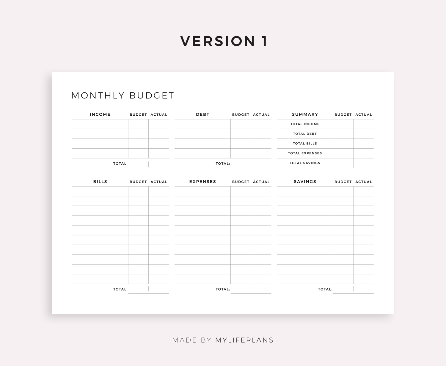 This is a printable monthly budget planner — just download, print, and start using it right away.