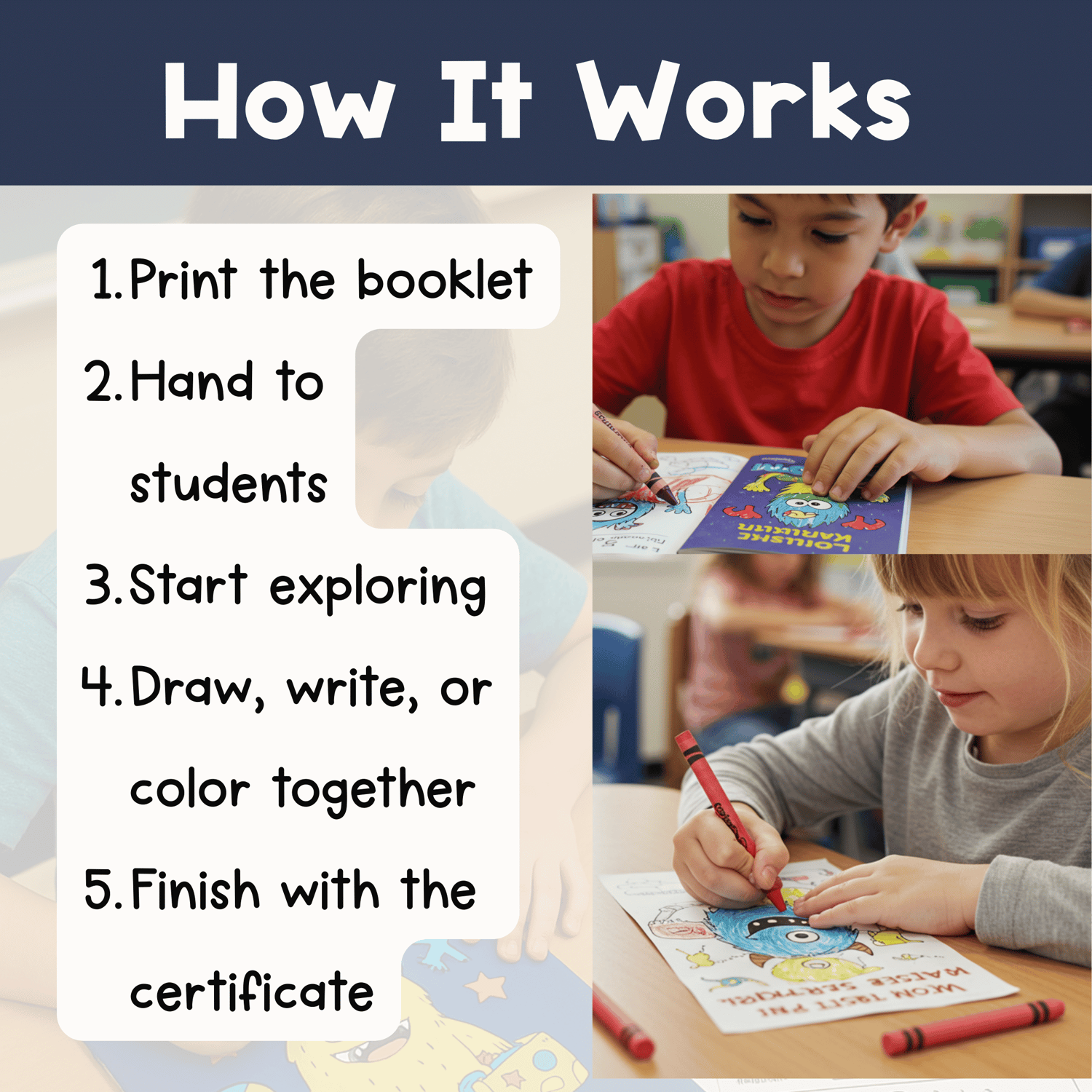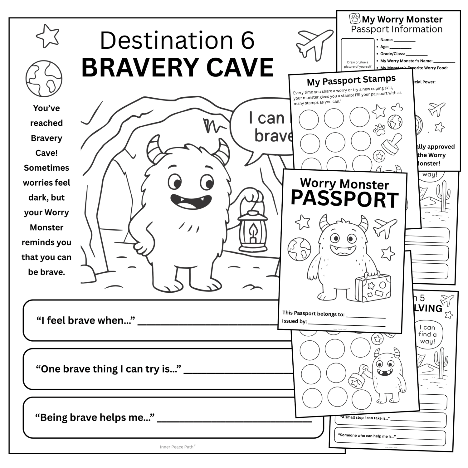 Kids color their own passport, fill in their monster’s details, and then “travel” through destinations like Calm Island, Confidence Mountain, and Bravery Cave.