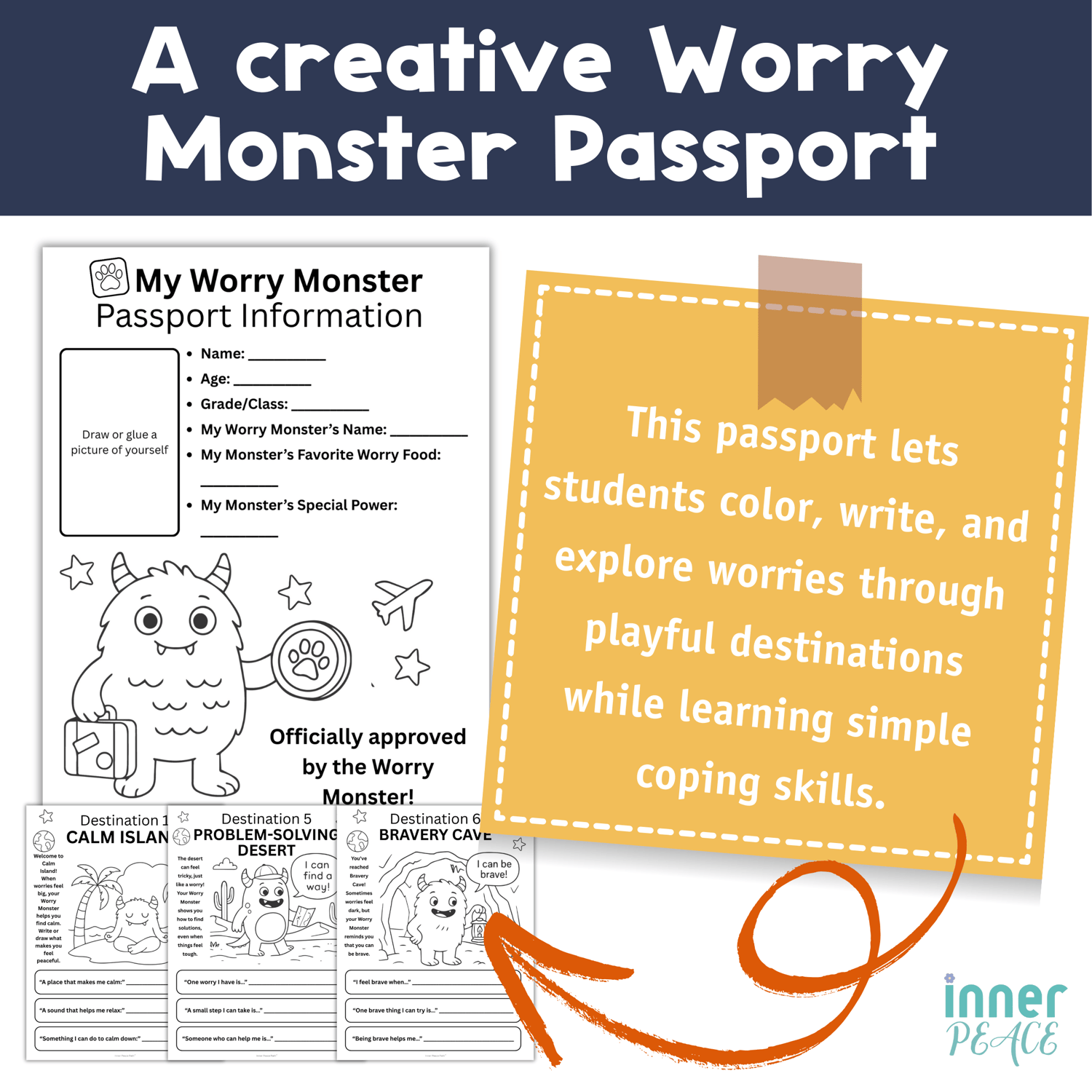 Worry Monster Passport Counseling SEL Worksheet Social Emotional Learning Activities