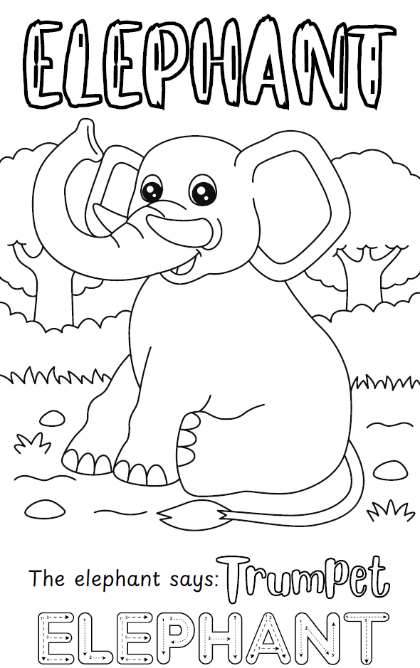 - The name of each animal at the top of the page – children can read it or colour it in.