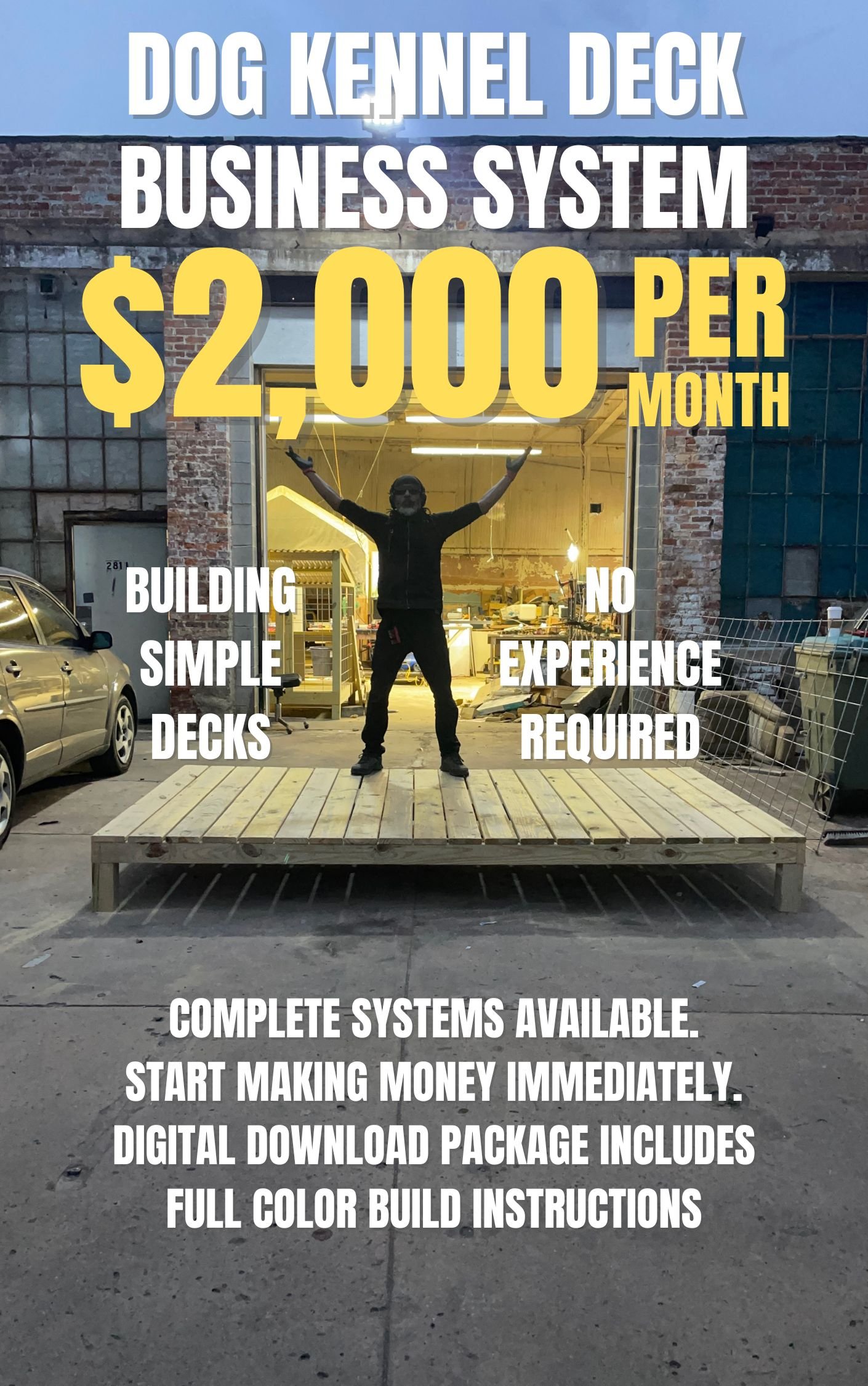 The Dog Kennel Deck Business System is your all-in-one solution to launching a profitable, low-cost, scalable businessβright from your garage or backyard.