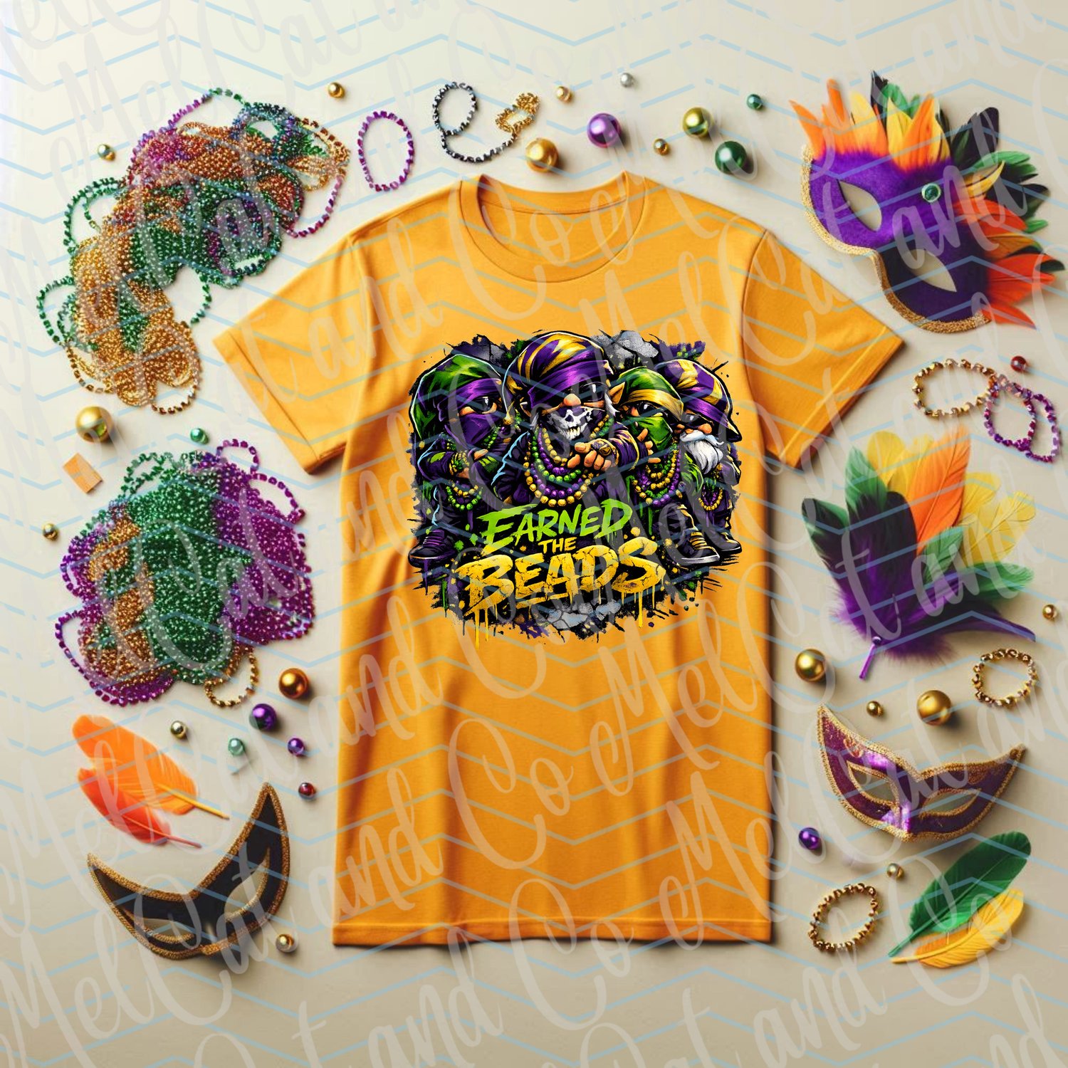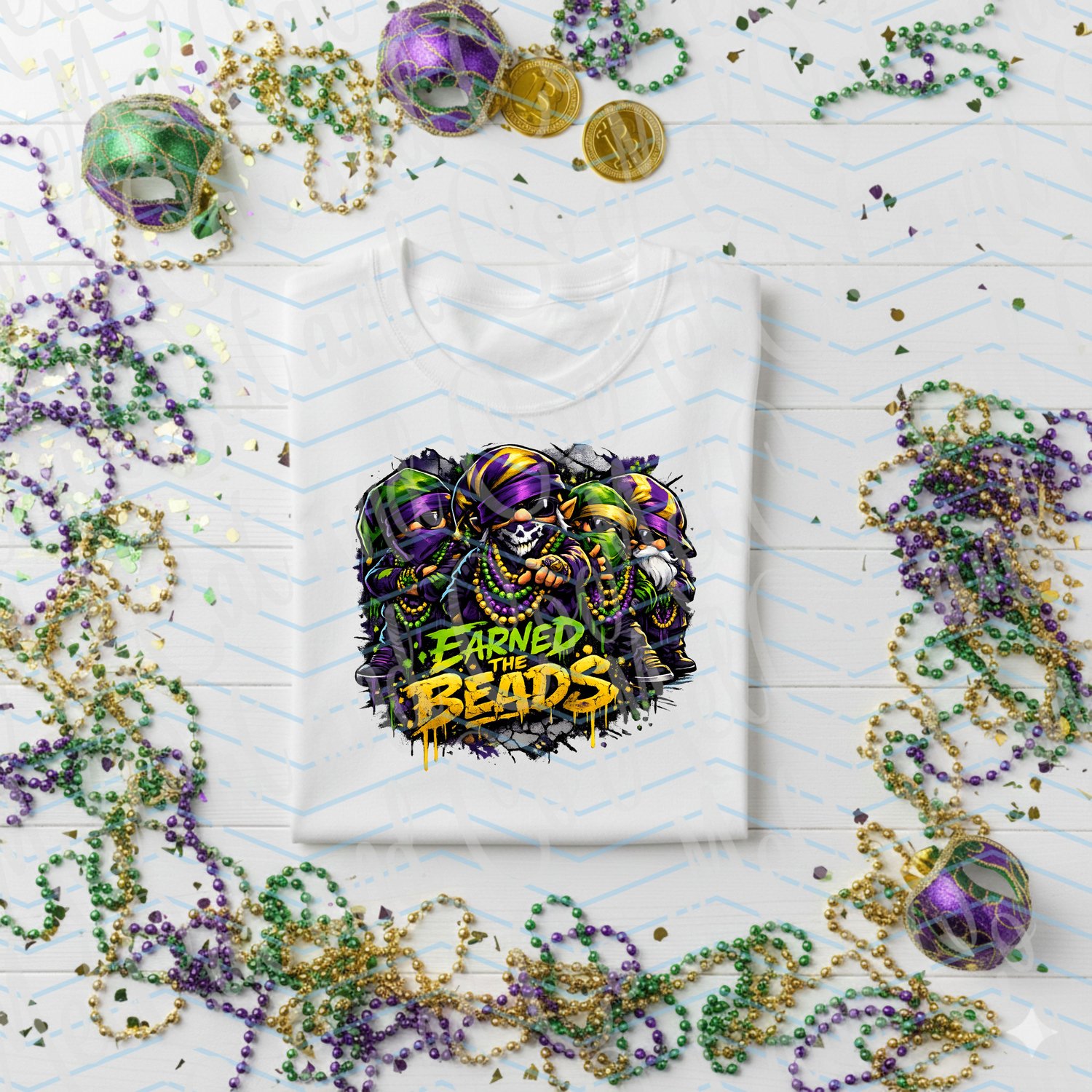 Turn heads this Mardi Gras with this bold, high-impact “Earned the Beads” digital graphic 💜💚💛