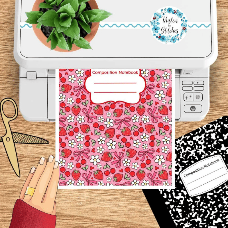 The PNG can be resized digitally to fit your notebook. It is wise to print a test page to make sure your notebook will fit once cut.