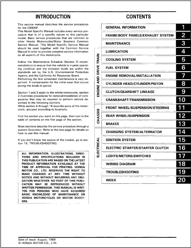 1989-1990 Honda CB-1 Motorcycle Service Manual