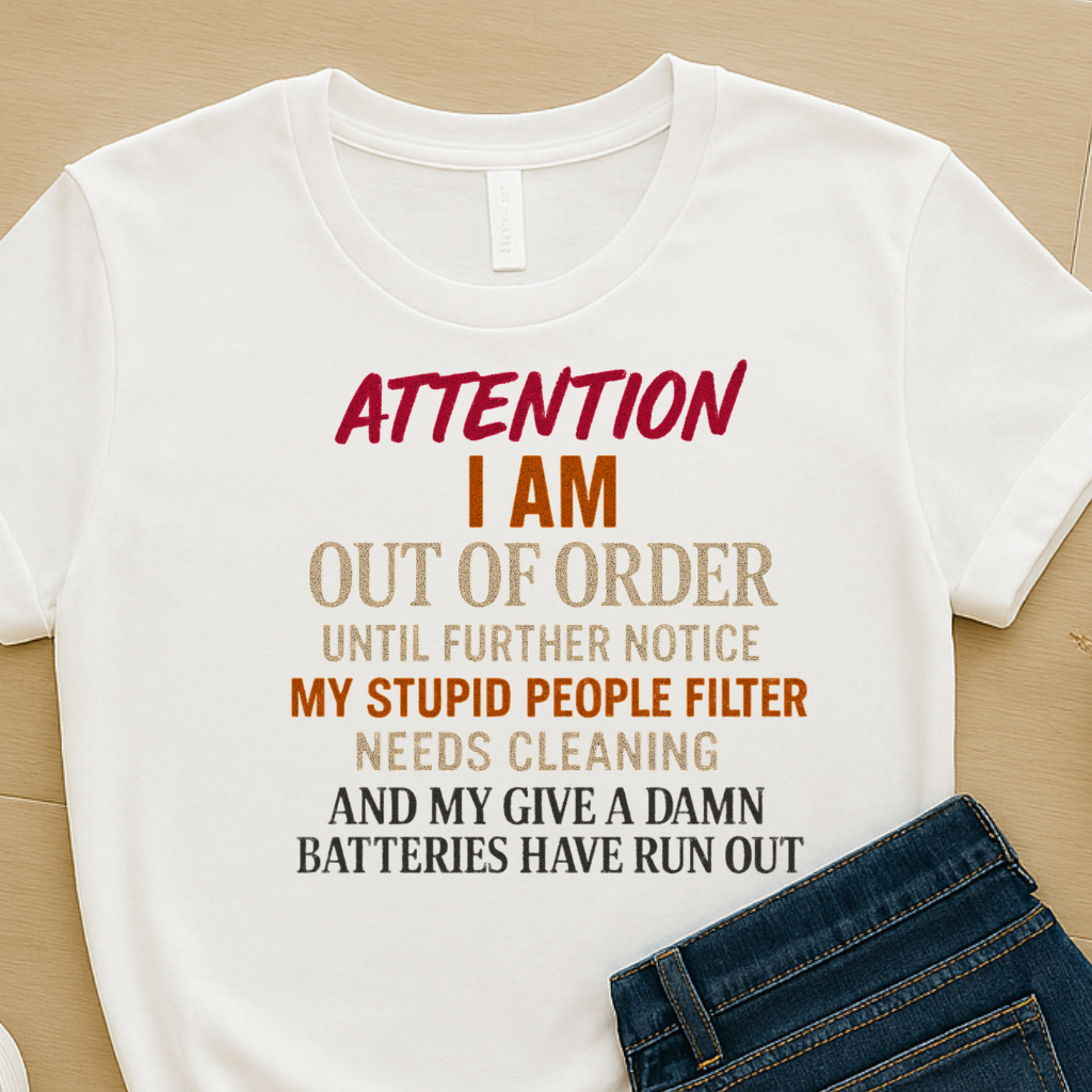 Out of Order Funny Glitter Text PNG | Stupid People Filter Design | Instant Download | Digital Shirt Design | Sass Quote